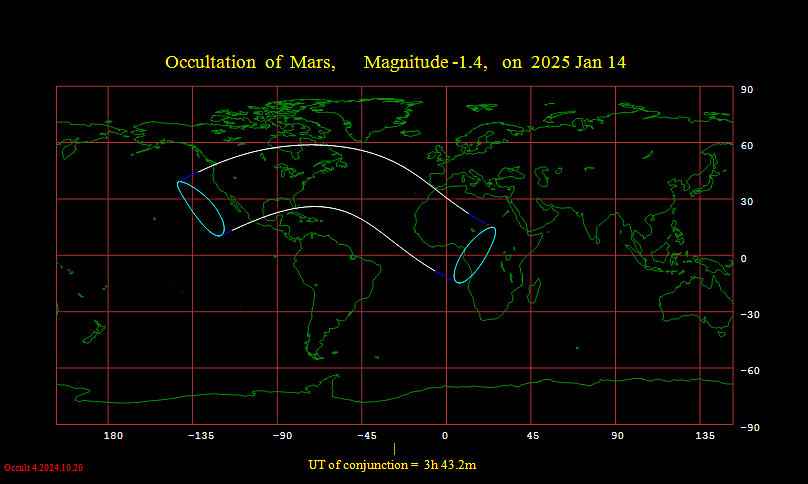 (cyan=occultation at moonrise/moonset; red dotted=daytime occultation; blue=twilight occultation; white=nighttime occultation)